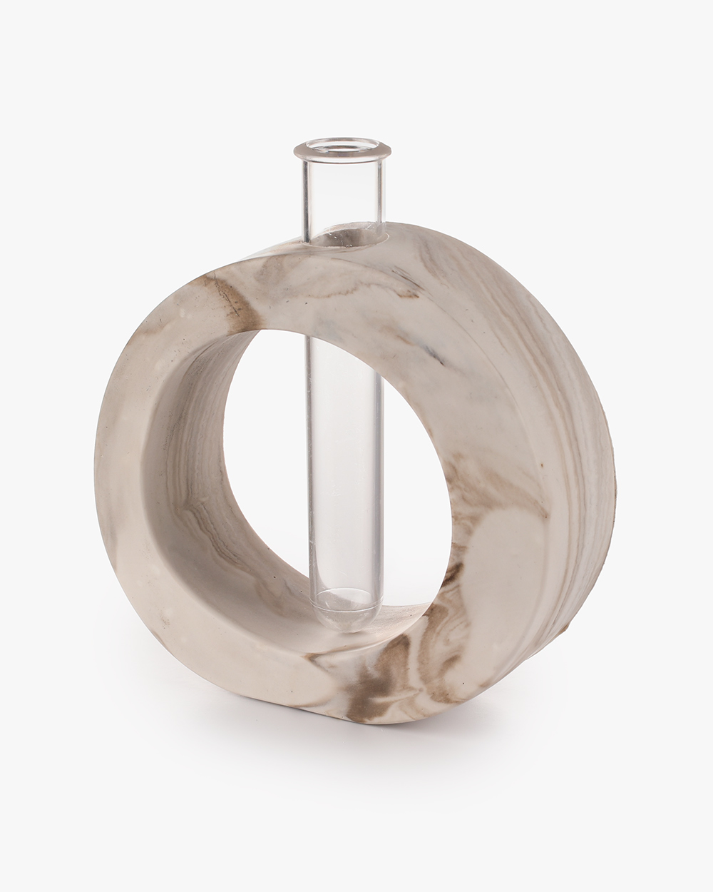 Αναβαθμίστε τη διακόσμηση του χώρου σας με αυτό το μοντέρνο βάζο που συνδυάζει πορσελάνινη βάση και γυάλινο σωλήνα.