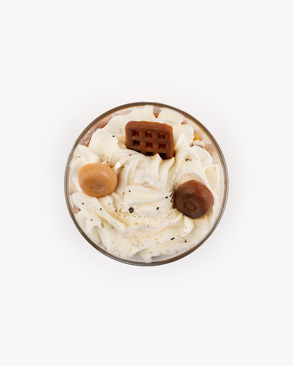 Τα κεριά μας είναι σχεδιασμένα να μοιάζουν με τα αγαπημένα σας γλυκά και να γεμίζουν το χώρο σας με ζεστασιά και απολαυστικά αρώματα.